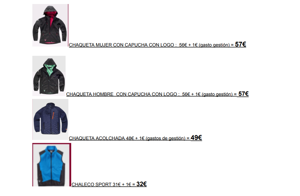 Nos ofrece la compra de chaquetas, forros o chalecos . Se puede gestionar el pedido de cada socio a través del correo electrónico : veintis@veintis.com Para este pedido la fecha será hasta el 22 de abril miércoles.